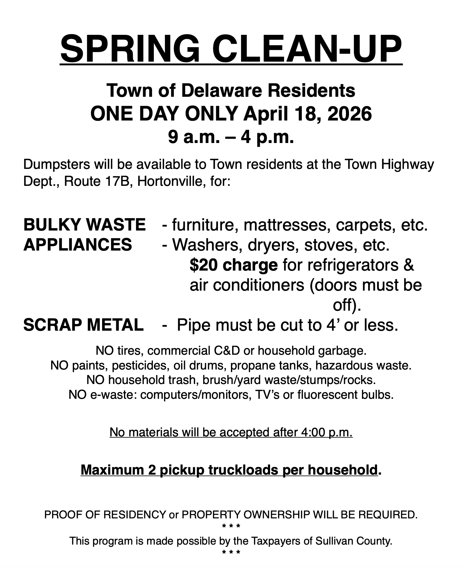 Annual Town Spring Clean-up Set for April 18